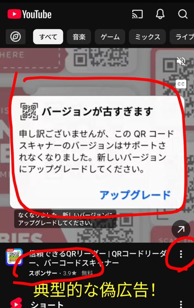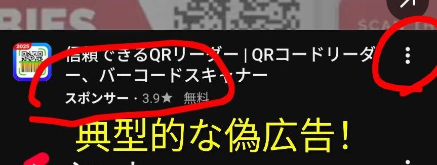 広告と気づかずに進んでしまうと、何の役にも立たないインチキアプリを入れてしまいます。しまいに、広告が次々と出てきて、スマホが使い物にならなくなってしまった!なんていう事例が多数あります。