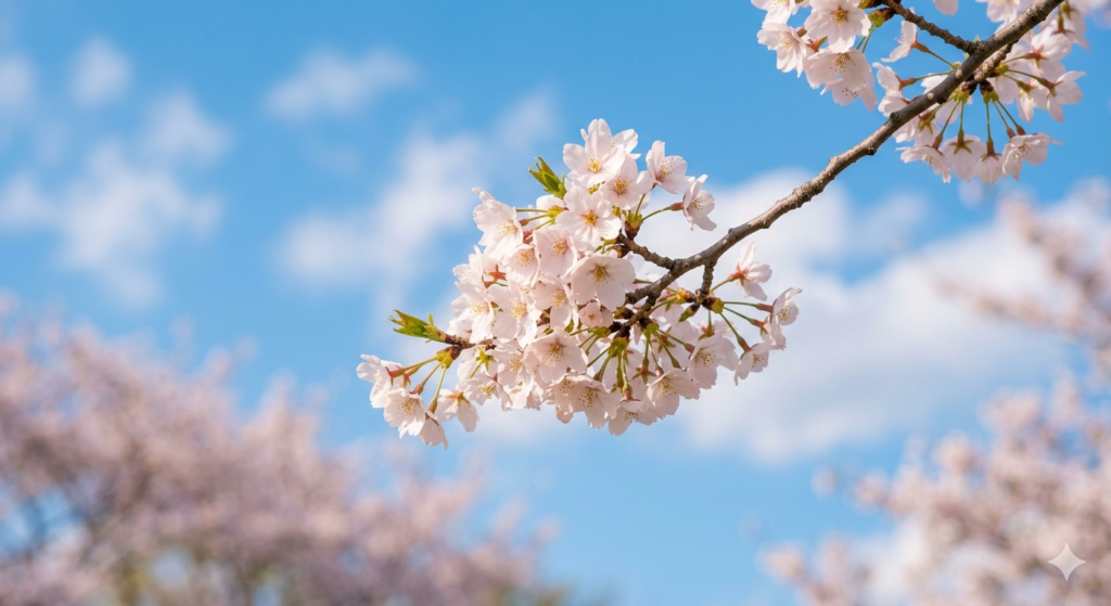 • コツ: 晴れた日に、「青空」をバックにするだけでコントラストがはっきりし、桜の色が鮮やかに引き立ちます。